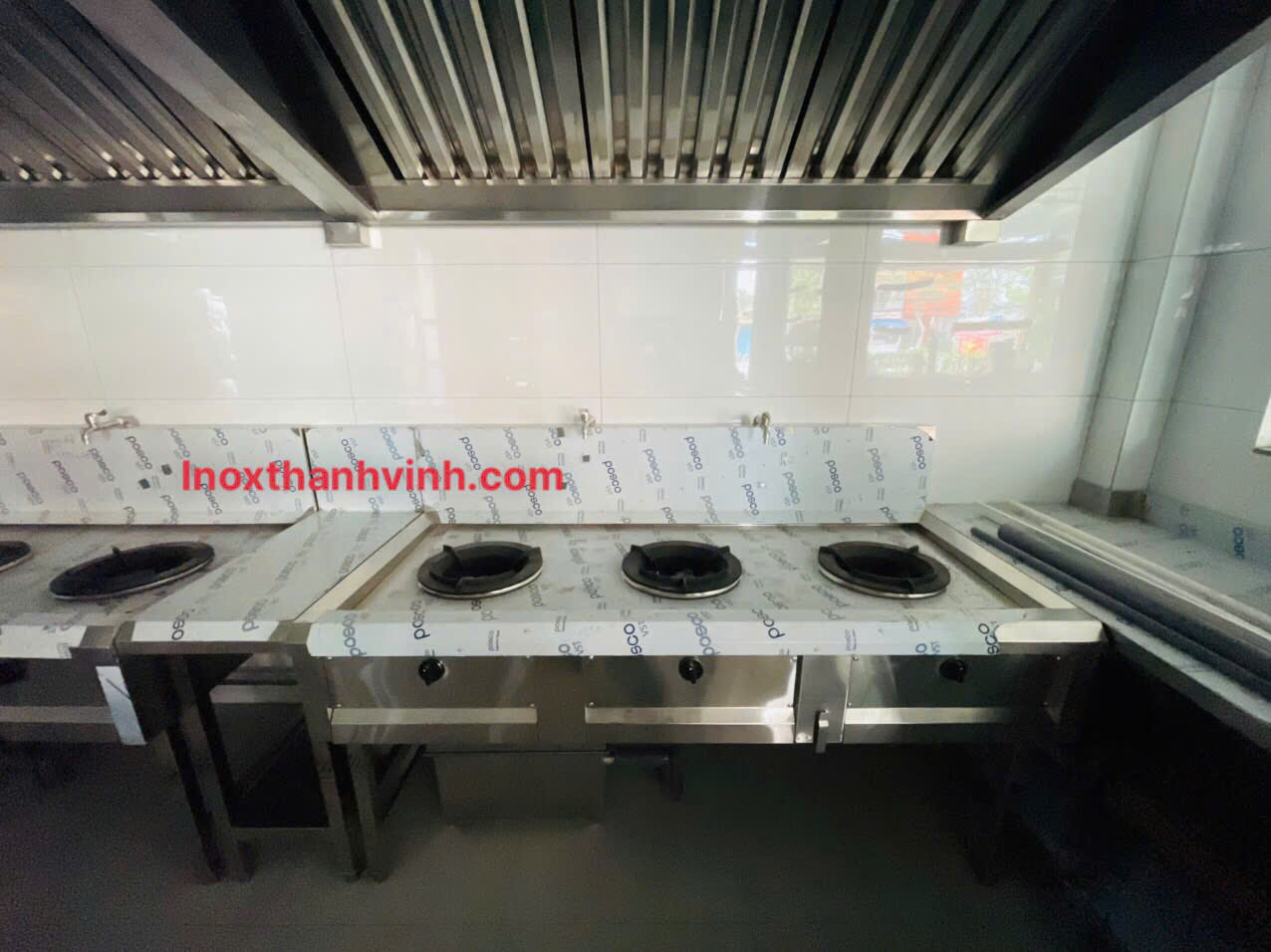 Tại Inox Thành Vinh, bếp được gia công theo kích thước và yêu cầu riêng. Có thể thiết kế thêm kệ dưới, hệ thống quạt thổi, hoặc bếp kết hợp để phù hợp mặt bằng thực tế.