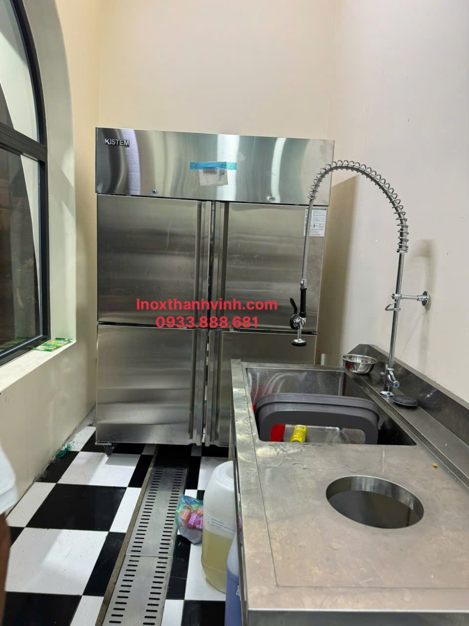 Bàn sơ chế, chậu rửa inox, kệ để đồ