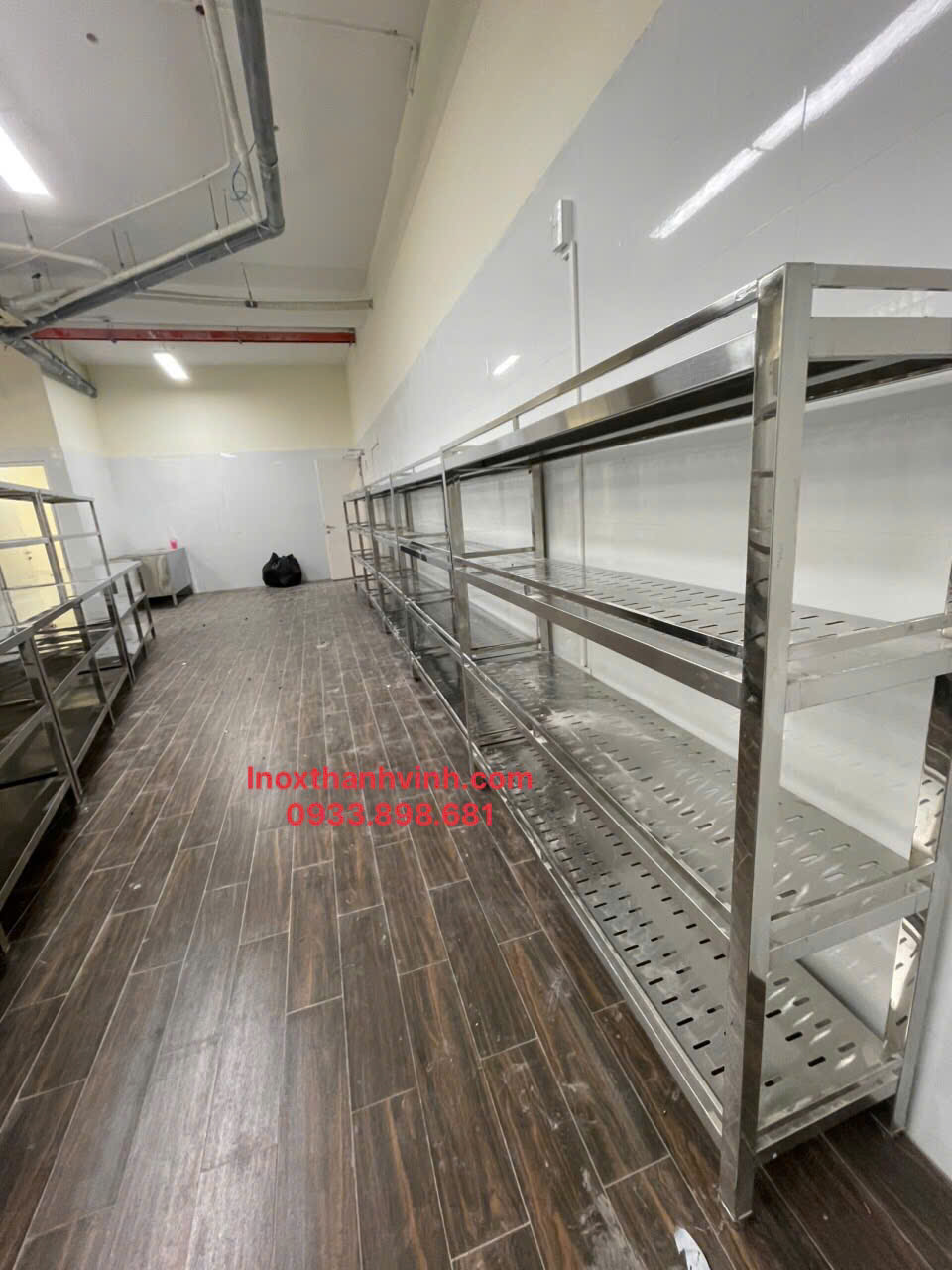 Khu sơ chế: Bàn inox, chậu rửa công nghiệp, xe đẩy, kệ inox…