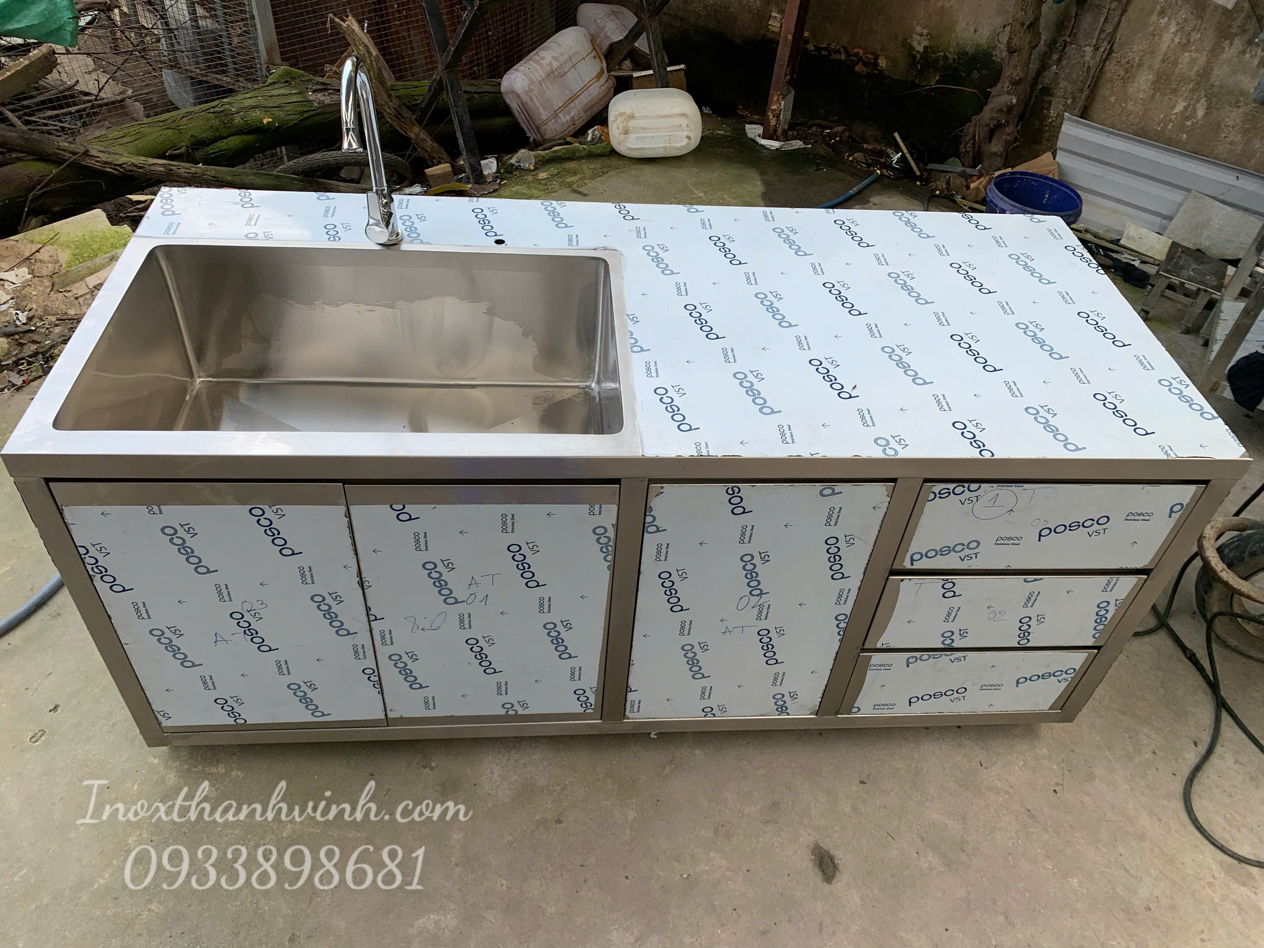 👉 Với kinh nghiệm từ Inox Thành Vinh, 80% khách cải tạo bếp quay lại chọn tủ inox vì vấn đề hư tủ gỗ quanh chậu rửa.